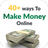 มีหลายวิธีในการสร้างรายได้ออนไลน์ บางส่วนมีการจัดตั้งขึ้นมากกว่าที่อื่น ๆ แต่ทุกคนสามารถทำได้โดยทุกคนที่มีคอมพิวเตอร์และการเชื่อมต่ออินเทอร์เน็ต เราได้รวบรวมรายชื่อวิธีการทำเงินออนไลน์ยอดนิยมกว่า 40 วิธี บางอันต้องใช้เงินลงทุนเล็กน้อย บางอันฟรี และบางอันก็สนุกด้วยซ้ำ